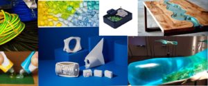 بسیاری از مواد از طریق تبدیل رزین های مصنوعی به جامد تولید می شوند. نمونه های مهم بیسفنول دی گلیسیدیل اتر است که رزینی است که با افزودن سخت کننده به چسب اپوکسی تبدیل می شود. سیلیکون ها اغلب از رزین های سیلیکونی از طریق ولکانیزاسیون در دمای اتاق تهیه می شوند. رزینهای آلکیدی در رنگها و لاکها استفاده میشوند و با قرار گرفتن در معرض اکسیژن هوا سخت یا سخت میشوند.