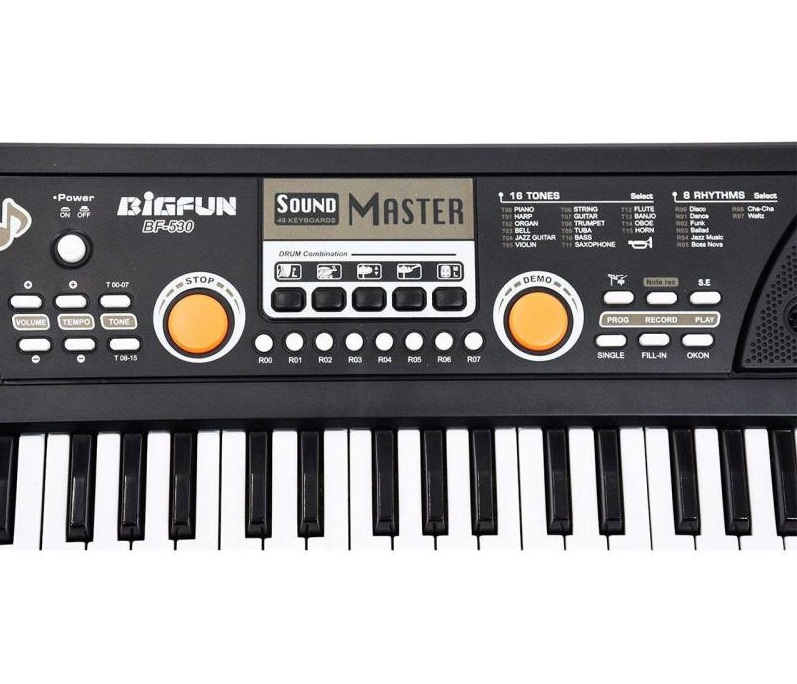 دارای یک اسپیکر – اسپیکر در سمت چپ قرار دارد و اجای باند سمت راست تزئینی میباشد. – دارای ۴۹ کلید بر روی کیبورد – قابلیت پخش موزیک MP۳ – دارای پورت USB – دارای میکروفن – دارای ۸ ریتم – دارای ۱۶ تن – دارای ۶ دمو – دارای قابلیت ضبط موسیقی – قابلیت کم و زیاد کردن صدا
